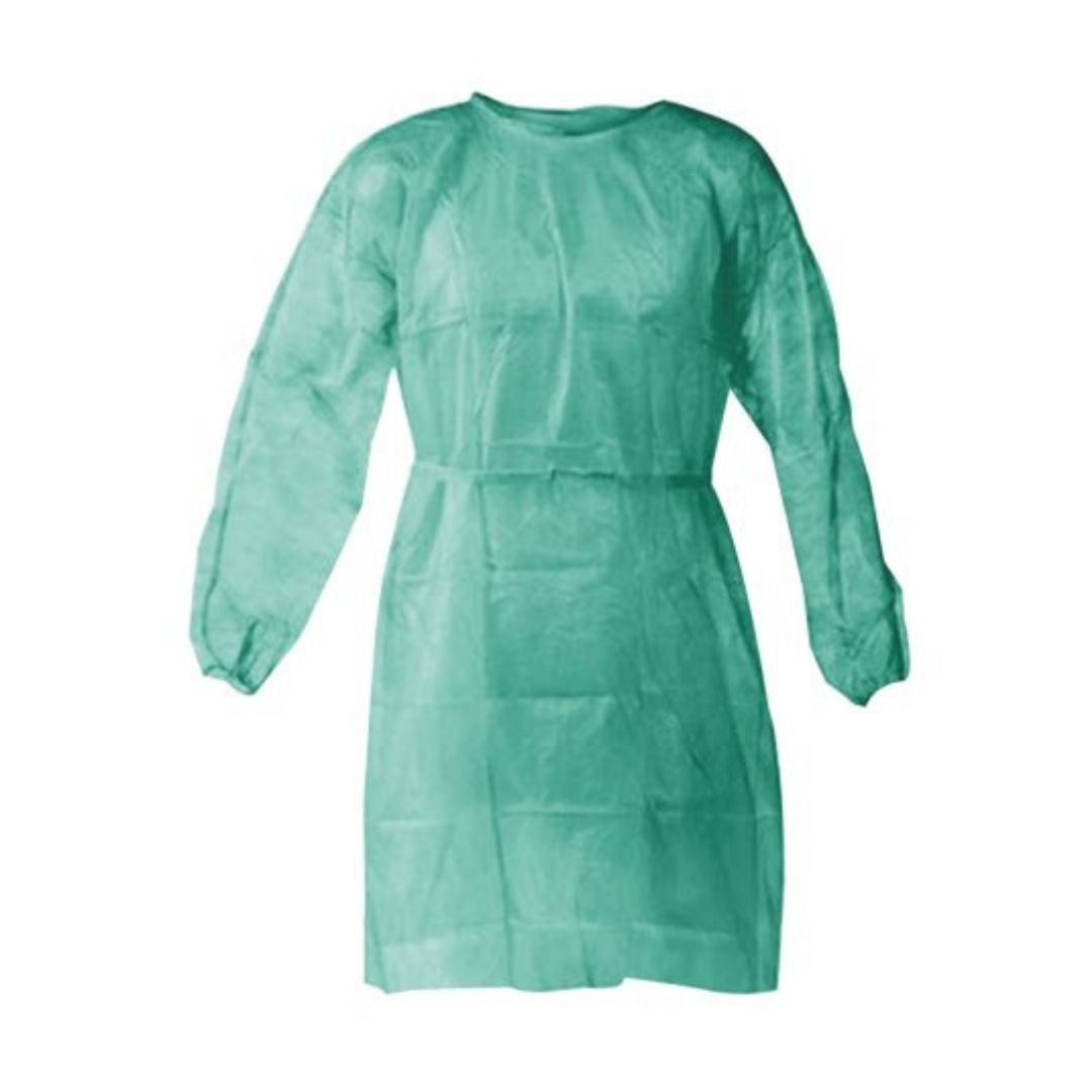 Bata Polipropileno Verde com punhos em algodão para proteção hospitalar em Embalagens de 10 Unidades