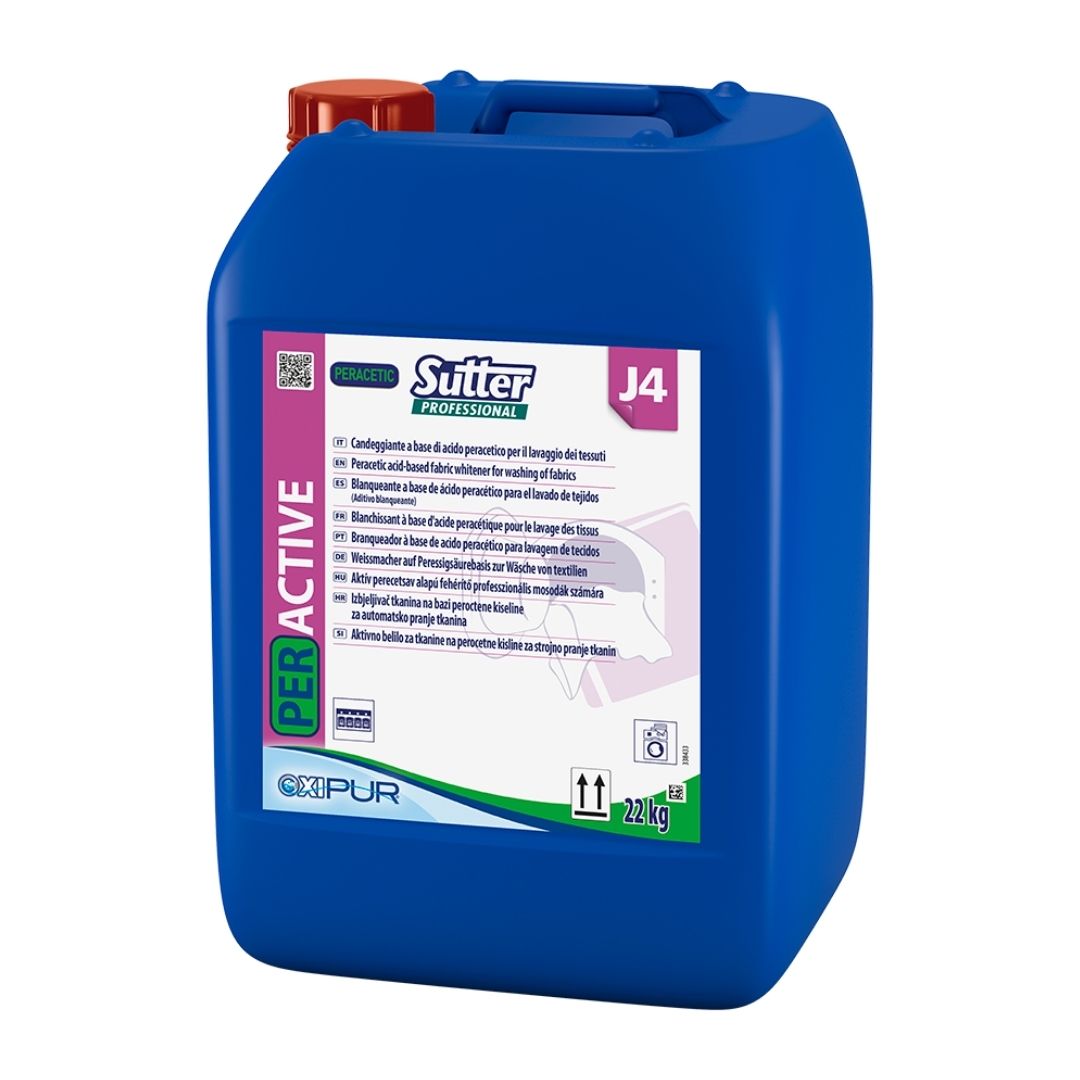 O Sutter Per Active é um branqueador profissional à base de ácido peracético, desenvolvido para a lavagem automática da roupa em contextos de lavandaria profissional e industrial que exigem elevados padrões de higiene. A sua formulação foi concebida para atuar de forma eficaz em baixas e médias temperaturas, proporcionando um efeito higienizante consistente e controlado, independentemente da dureza da água.