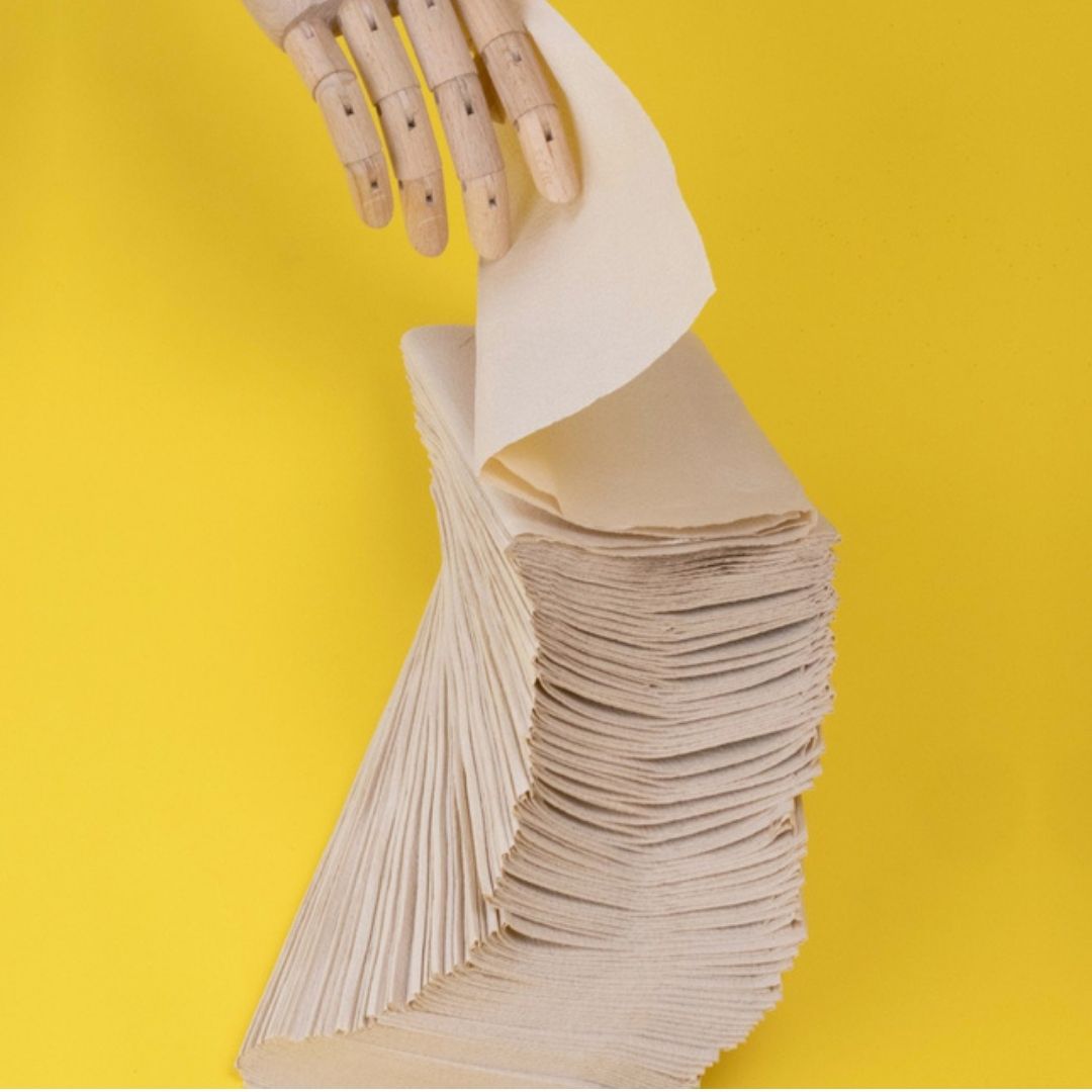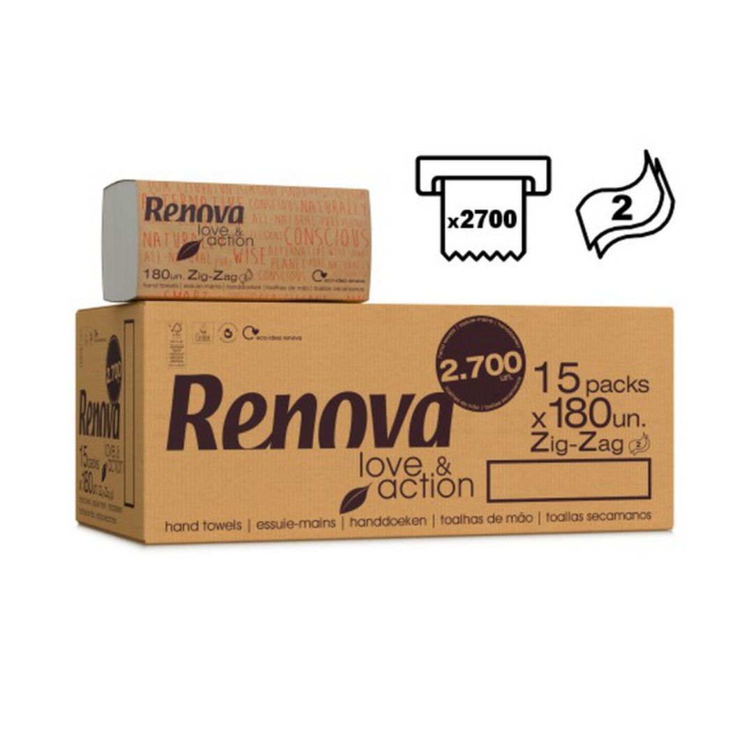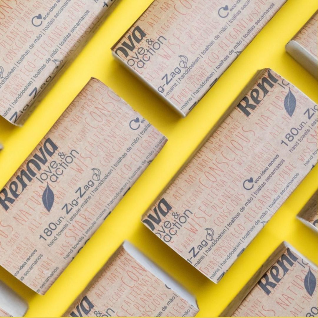Estas toalhas de mão zig zag Renova Love & Action são produzidas em papel cru natural, num tom bege suave obtido a partir da reciclagem de papéis já utilizados. A composição em fibras recicladas garante um produto sustentável, mantendo simultaneamente resistência, boa absorção e conforto ao toque. O produto é certificado com o Rótulo Ecológico da União Europeia e com a certificação FSC®, assegurando que o material celulósico de base florestal utilizado provém de fontes geridas de forma responsável.